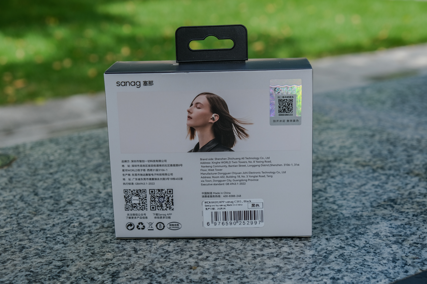 Наушники Sanag C16S поставляются в небольшой картонной коробке. Все ключевые характеристики и информация о продукте имеется