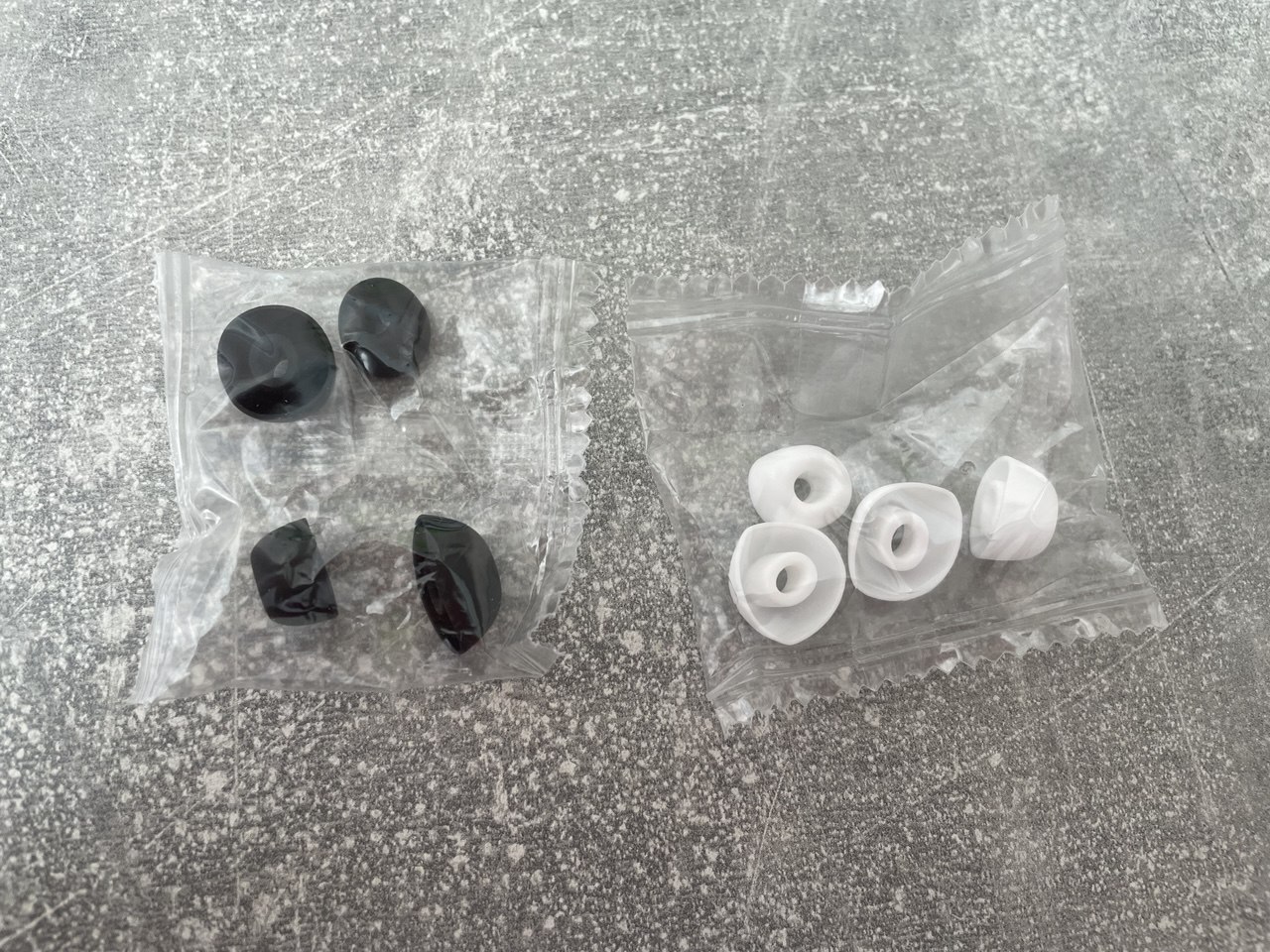 Внутри упаковки наушники и кейс надежно зафиксированы в поролоновом лотке, а дополнительные аксессуары аккуратно разложены по отдельным отсекам. Упаковка выглядит стильно и информативно, соответствуя ожиданиям покупателей в этом ценовом сегменте.