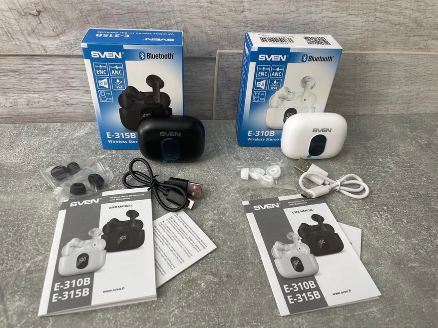 Комплектация и внешний вид беспроводных наушников SVEN E-310B и E-315B