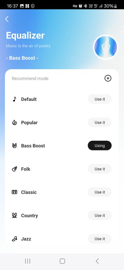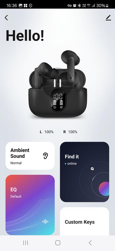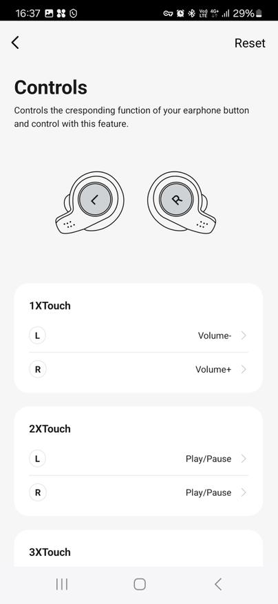 Внутри все привычно и логично. На верхней части экрана красивое изображение наушников с индикацией заряда каждого. А разделе Ambient Sound можно выставить несколько режимов шумоподавления. Во вкладке Equalizer есть несколько преднастроенных пресетов или можно накрутить полностью кастомный свой. В меню Setting есть возможность изменить имя, переключить игровой или музыкальный режим, а так же сделать полный сброс (factory reset). В пункте Controls настраиваются действия касаний на каждый наушник раздельно.