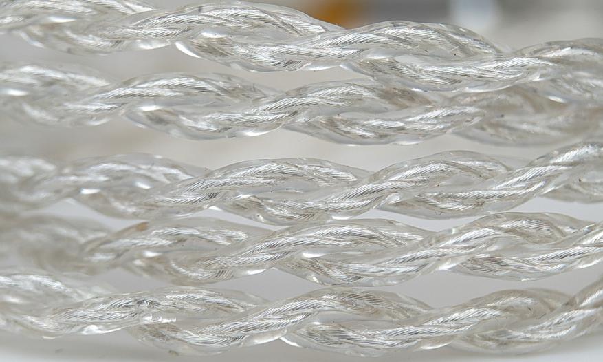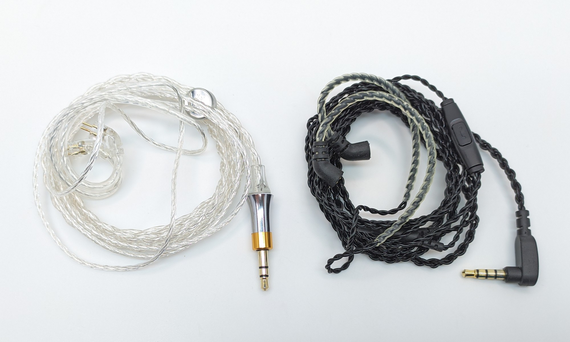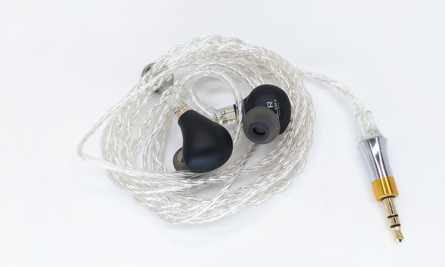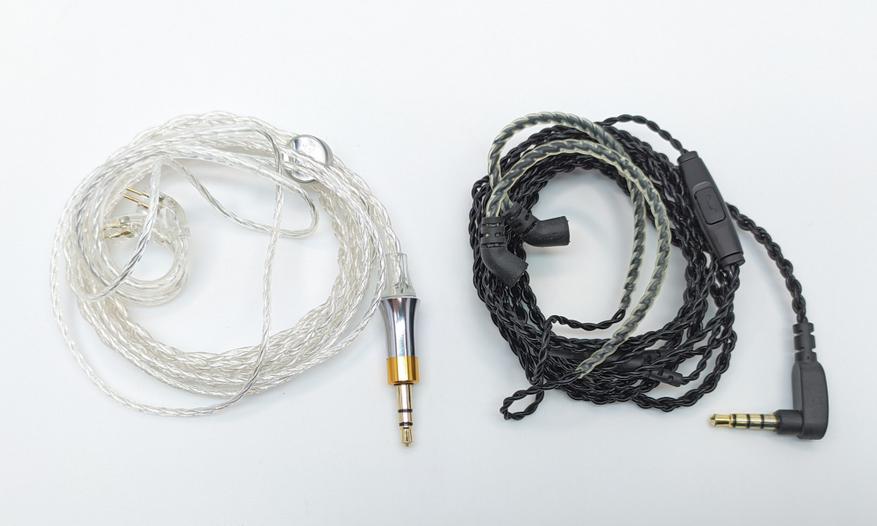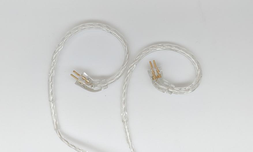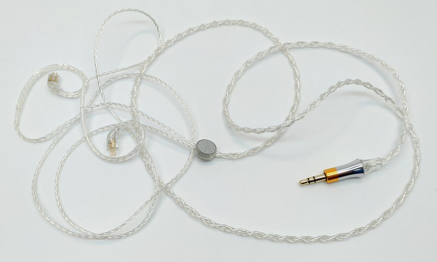 Теперь это посеребренный кабель из бескислородной меди высокой очистки. У него 2-pin разъемы с небольшой прямоугольной выемкой, которая не подходит даже для выступающего прямоугольного выступа оригинальных BL-03. Зачем она сделана, вообще непонятно. Кабель немного склонный к запутыванию, и у него нет никакой защиты от перегиба на джеке 3,5.