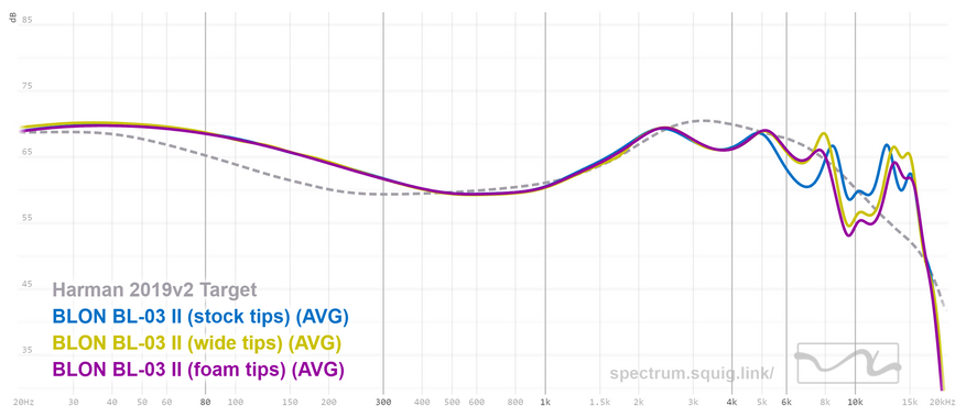 Мне пришлось опять пройти этот квест с перебором различных насадок. Хорошо показали себя SpinFit CP100 с амортизирующим звуководами и насадки от слухового аппарата. Да, была в том числе на форумах и такая рекомендация. И в случае с BL-03 это вполне себе мера. Вот так это выглядит и так звучит в сравнении со стоковыми насадками.