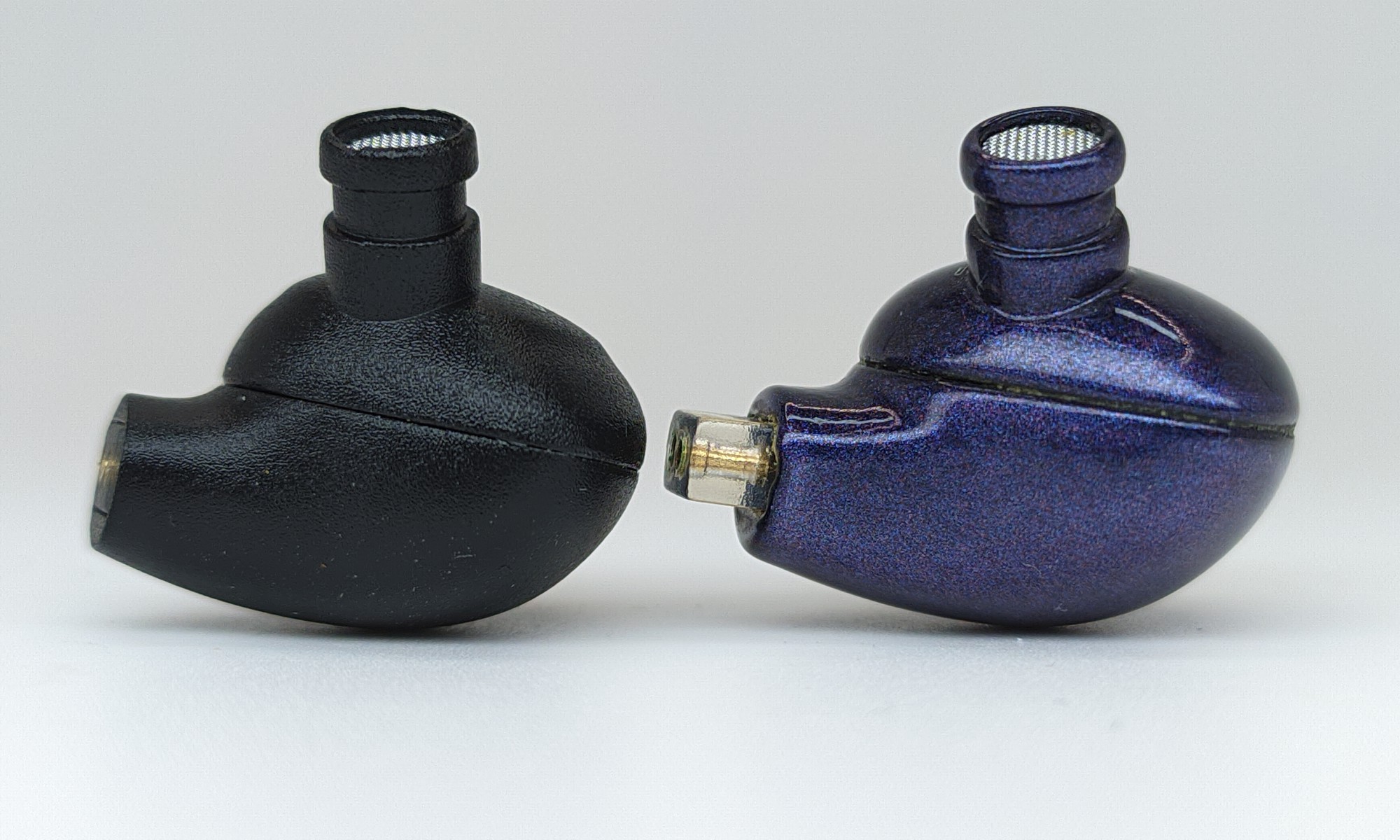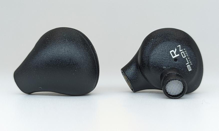 Полностью металлические округлые корпуса из цинкового сплава состоящие из двух половинок с матовым покрытием. 2-pin разъемы подключения кабеля вровень с корпусом. Одно компенсационное отверстие рядом со звуководом и еще одно почти незаметное, как выемка в корпусе в прямоугольном отверстии для разъемов подключения кабеля. За звук отвечает один динамический двухкамерный 10-мм драйвер с карбоновой диафрагмой.