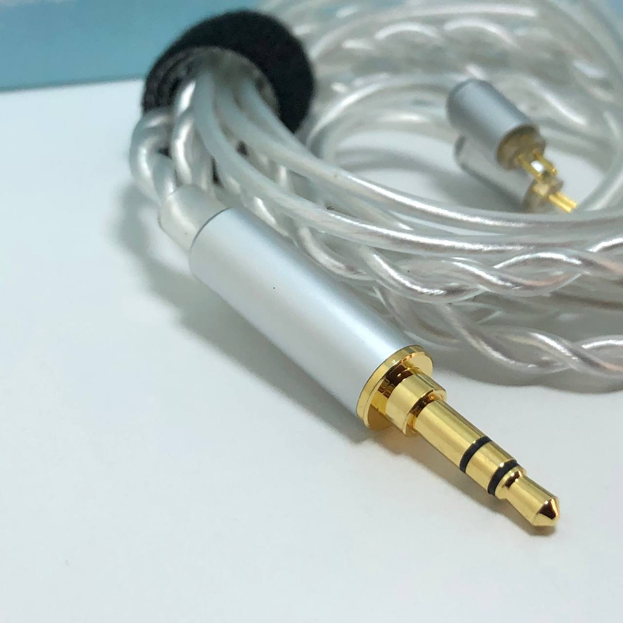 На одном конце расположен стандартный разъем 3,5 мм (также вы можете выбрать кабель с разъемами 2,5 мм или 4,4 мм соответственно). Посередине кабеля находится приятный на ощупь алюминиевый разделитель с логотипом компании, а на другом конце — заушины агрессивной формы и 2-pin вилочка 0,78 мм.