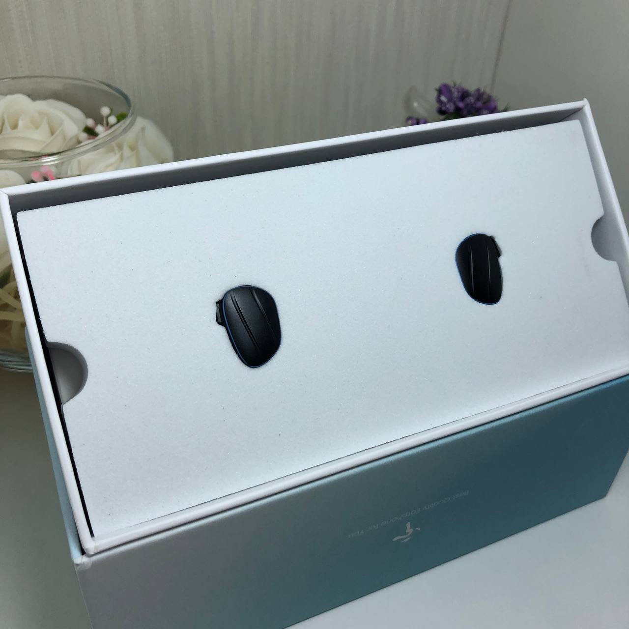 Распаковав её, я обнаружил маленькие и красивые шеллы, брендированный чехол с ушными насадками и кабелем внутри, а также маленькую коробку с инструкцией и сертификатом с датой производства. Мои наушники черного цвета с синей окантовкой, но также можно заказать наушники в бирюзовом исполнении.