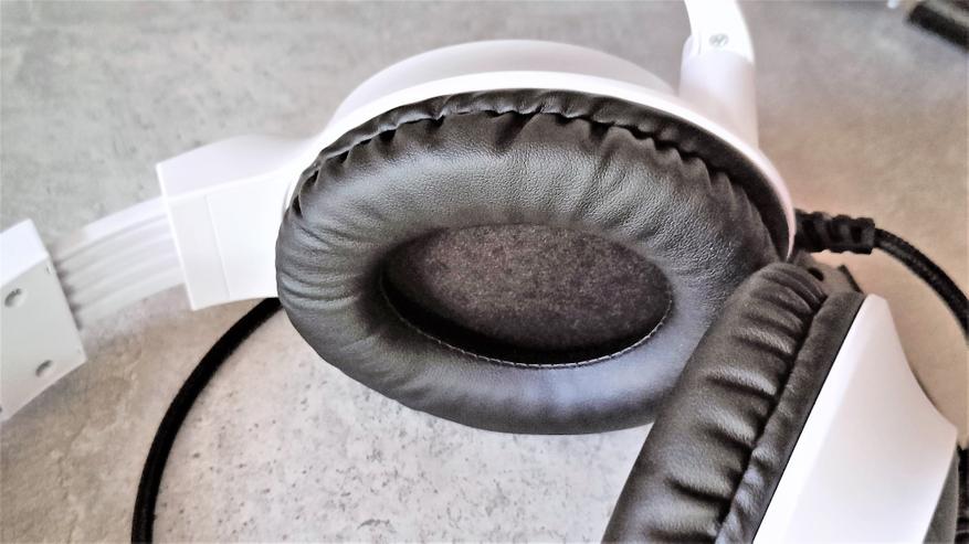 Наушники обладают классическими подушками амбушюрами из кож зама и решетка динамиков защищена тканью.