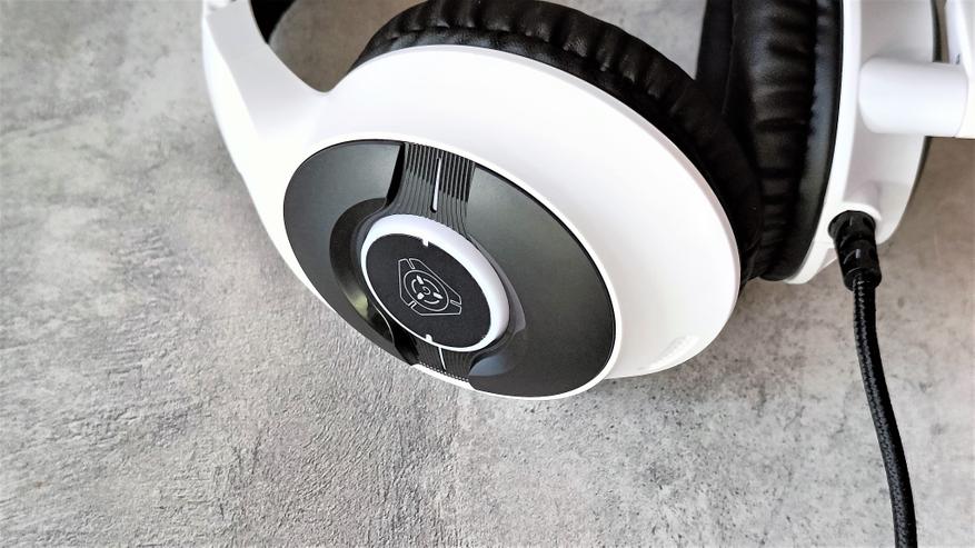 С боков наушников есть красивые дизайнерские элементы. А по центру нанесен рунический орнамент, который будет подсвечен пори подаче питания.