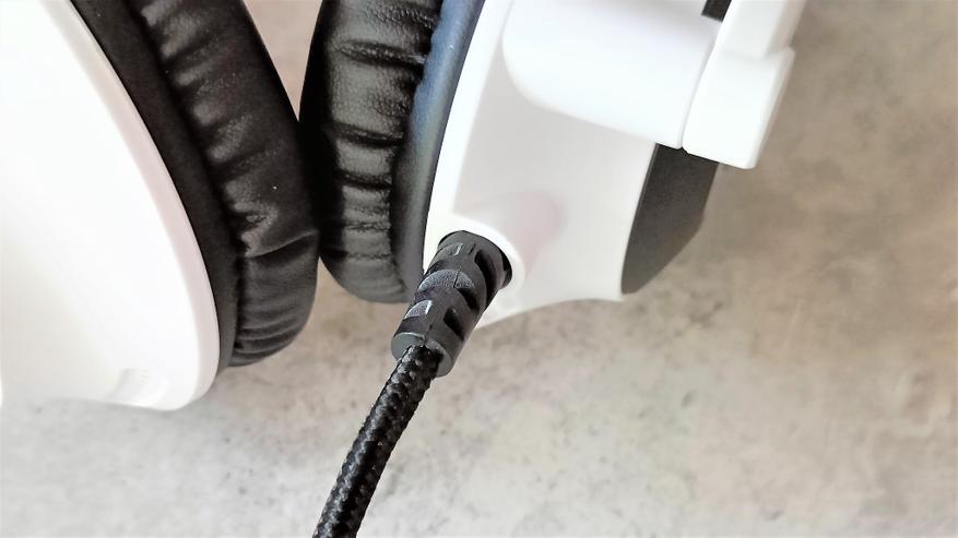 Кабель входит в наушники и для него есть специальная выделенная платформа, место входа в корпус защищено от перегибания резиновой гибкой перфорированной втулкой.