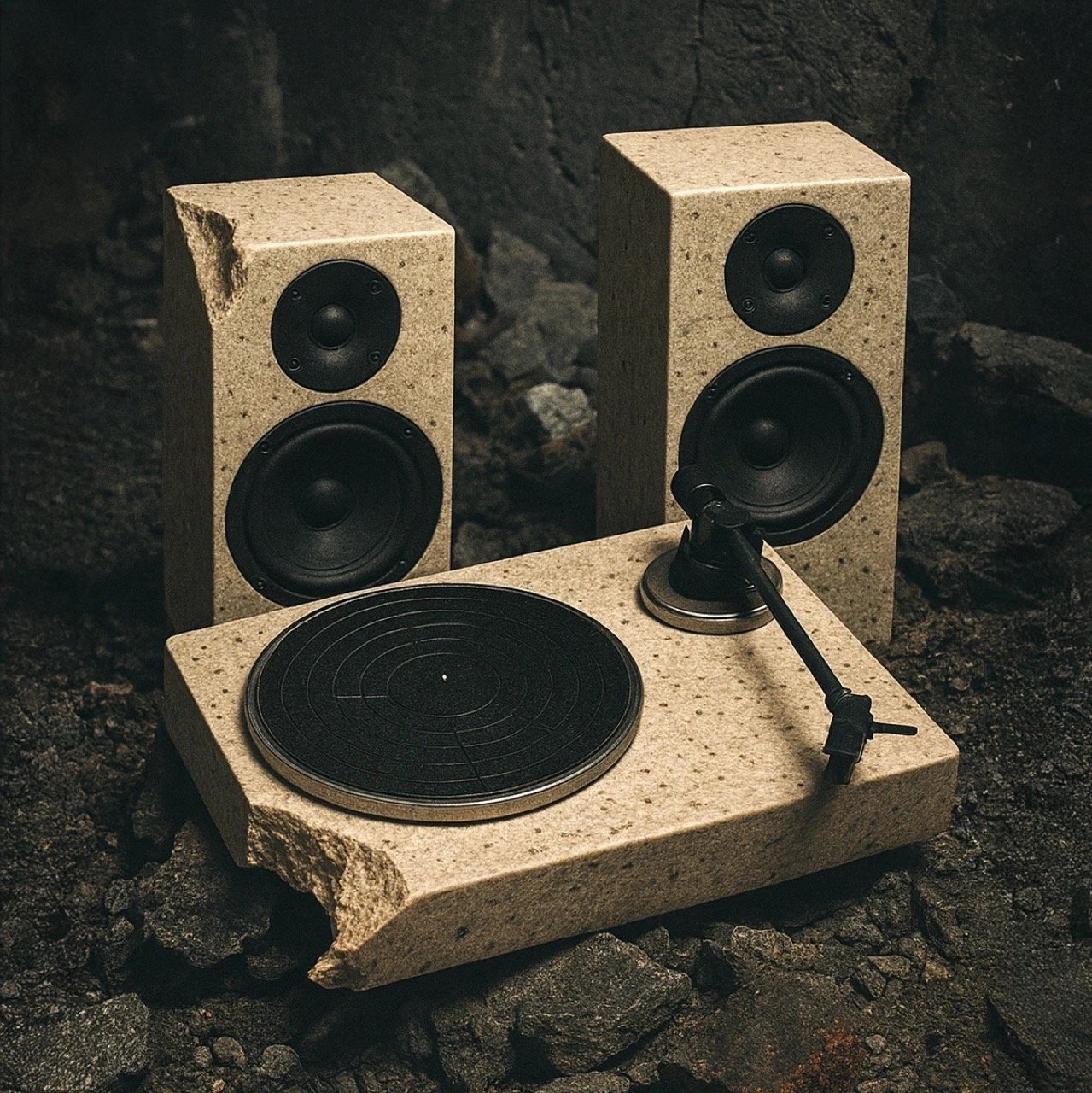 Британский дизайнер Стю Коул представил проигрыватель RA84, воссоздающий знаменитую «Бетонную стереосистему» израильского архитектора и дизайнера Рона Арада образца 1984 года. Новая модель изготовлена из переработанного потребительского пластика, но внешне имитирует каменную текстуру оригинала.