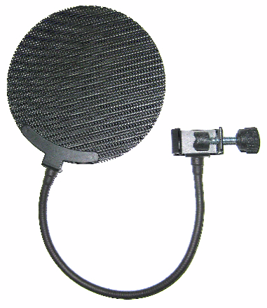 Поп-фильтр решает эту проблему механически. Он представляет собой тонкую сетку из нейлона, металла или специальной ткани, натянутую на круглую рамку. Устанавливается диск на расстоянии нескольких сантиметров от микрофона, между ним и ртом исполнителя.
