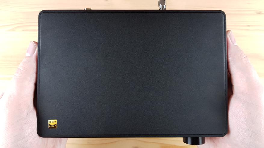 Корпус ЦАПа полностью выполнен из металла, сверху у него красуется логотип пройденной Hi-Res сертификации, а снизу аппарат фиксируется на 3 резиновых ножках. Почему именно три — не очень ясно.