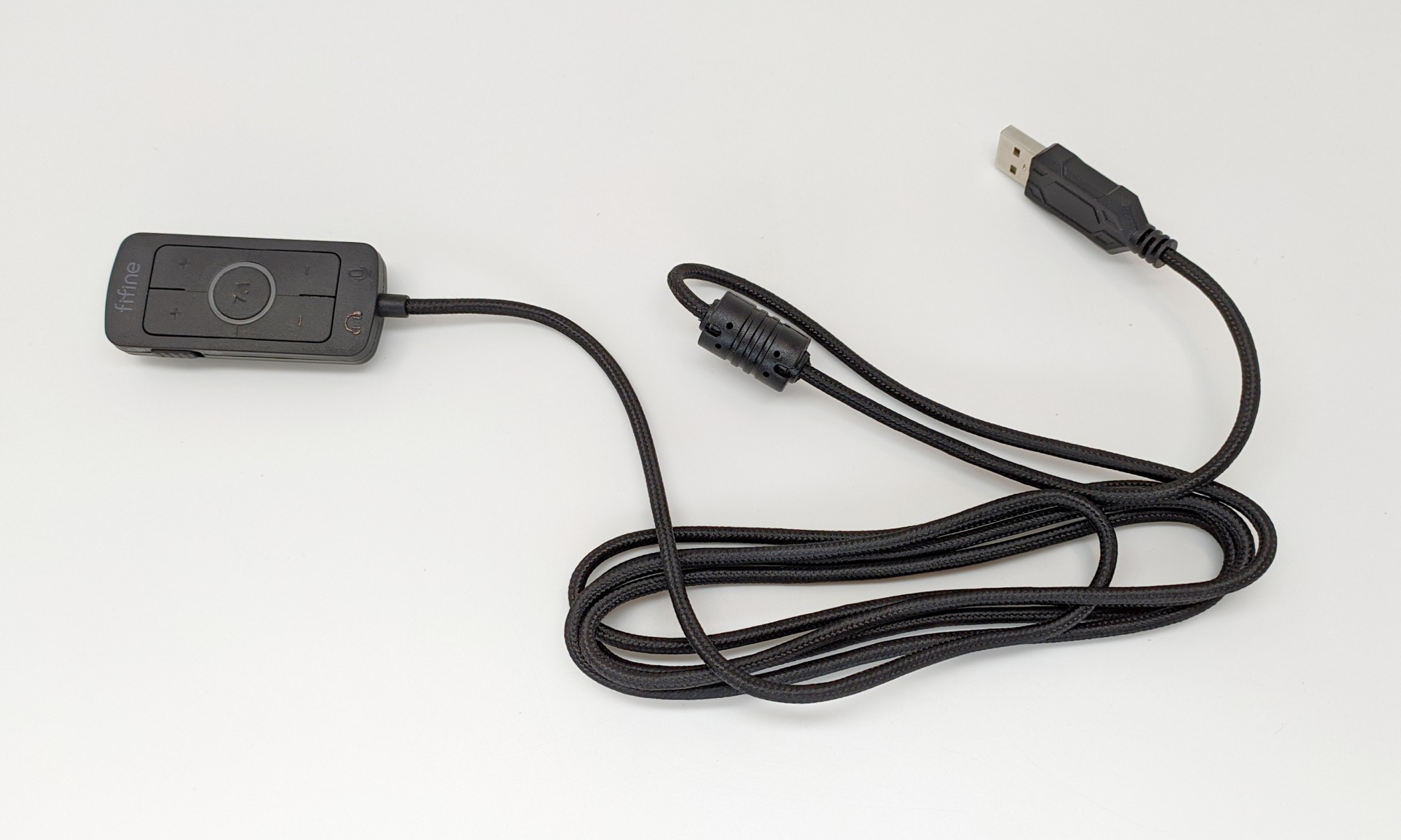 ЦАП внутри гарнитурного блока управления завелся на Windows 11 без каких-либо проблем на встроенных в систему драйверах. В устройствах определился как «fifine Headset». Кнопка управления громкостью регулирует громкость системы с шагом в два деления. Т. е. у нас получается 50 шагов градации громкости. С блока изменение громкости микрофона в системе не отображается, и, наверное, кнопки громкости микрофона меняют внутреннюю громкость микрофона на самом ЦАПе. Громкости регулируются как короткими нажатиями, так и долгим зажатием. Частота дискретизации для ввода и вывода доступна 44,1 или 48 кГц при 16 бит. Немного, но этого вполне достаточно для качественного звука. Шумов ЦАПа при записи звука в студийной программе я не заметил и при прослушивании также шумов не выявил. Не исключено, что это в том числе заслуга ферритового фильтра, который установили на кабель. Общая длина USB-кабеля со всеми разъемами составляет два метра.