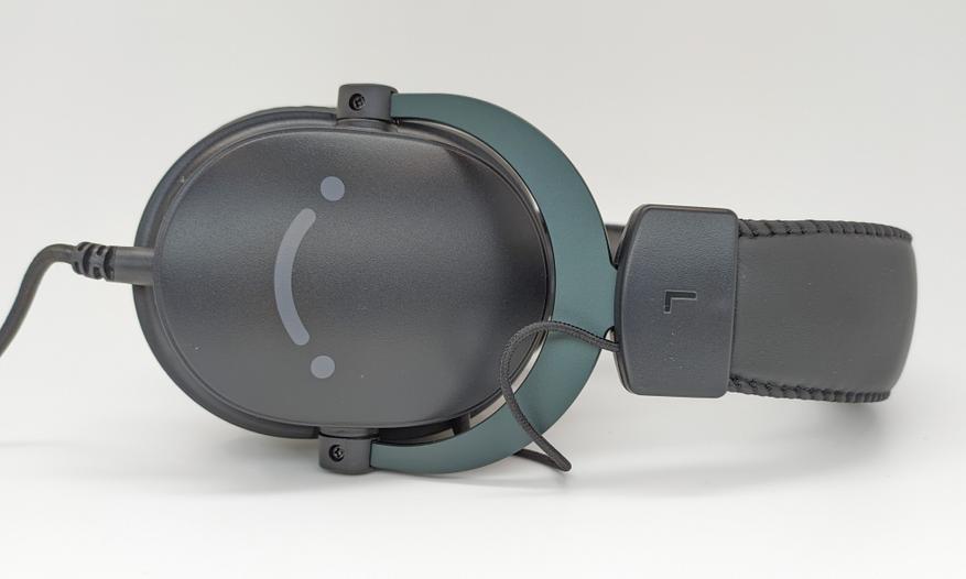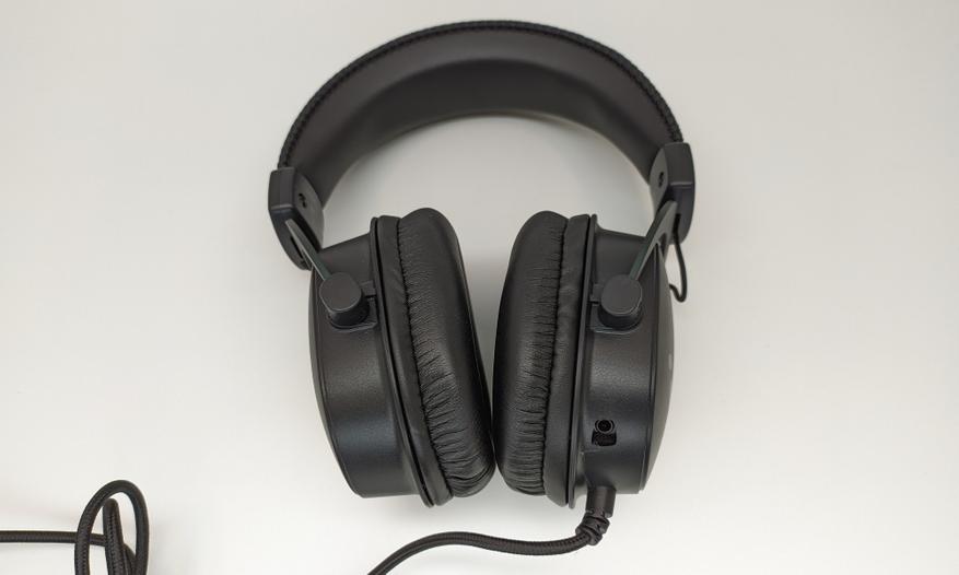 Конструкция чаш закрытая, но сверху на каждой чаше есть шесть небольших акустических отверстий. Через них немного звука просачивается наружу. Ведущий наушник левый, и к нему подключен несъемный кабель длиной один метра с джеком 3,5, а также на левой чаше есть вход 3,5 мм для модульного микрофона. Ниже будет информация о гарнитурном блоке и сменном модуле микрофона.