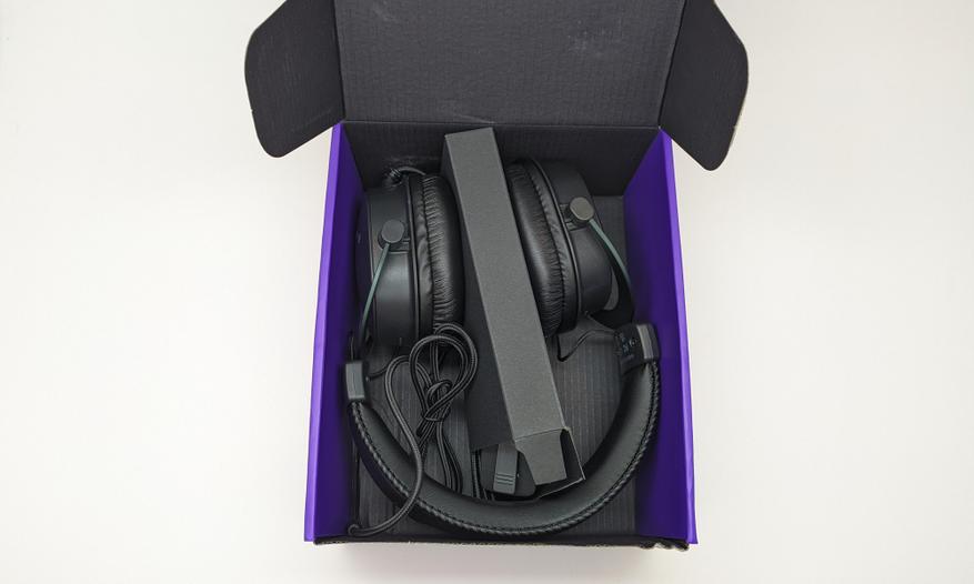 Приходят наушники в коробке средних размеров из не очень толстого картона, но с усиленными двойными стенками. У меня при транспортировке немного помялась коробка, но наушники от этого не пострадали.