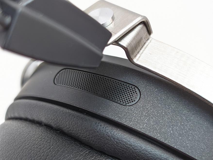 Само оголовье изготовлено из кожзама с внешней части и с велюровой отделкой на внутренней части. Все металлические части направляющих и креплений сделаны из нержавеющей стали. Пластиковые части чувствуются очень твердыми и прочными. Диаметр амбушюр 100 мм.