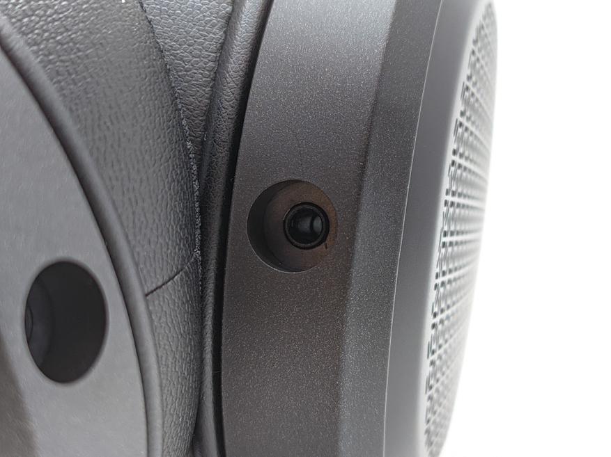 Сверху чаши расположилось, судя по всему, вентиляционное отверстие, прикрытое металлической сеткой. На направляющих оголовья есть риски для более точной фиксации размера оголовья. Всего двенадцать ступеней регулировки. Разъемы подключения кабеля утоплены, что сильно повышает надежность соединения.