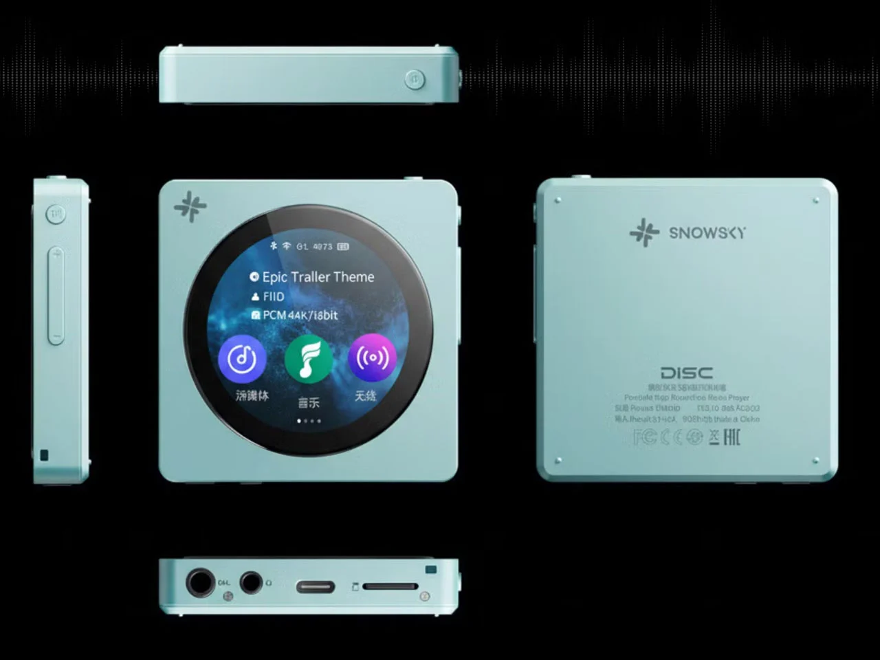 Snowsky Disc поддерживает карты памяти объёмом до 2 ТБ для хранения музыкальных файлов. Встроенный модуль Wi-Fi обеспечивает потоковую передачу через AirPlay и установку обновлений прошивки. Также доступно воспроизведение музыки из стриминговых приложений.
