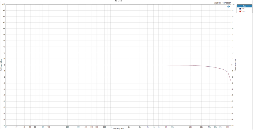 На замерах от производителя можно видеть линейную АЧХ со спадами <0.07 dB при 20 Hz~20 kHz и <2.8 dB при 20 Hz-90 kHz для балансного и обычного разъема при включенном и выключенном режиме Desktop Mode.