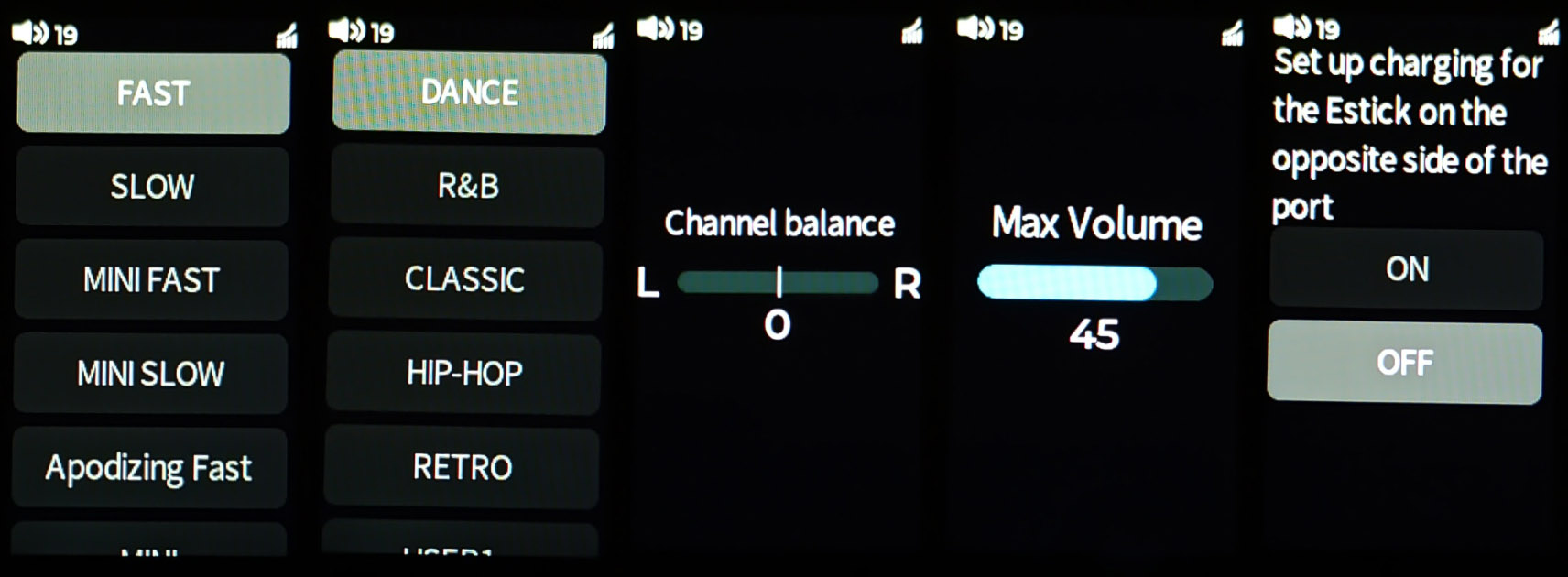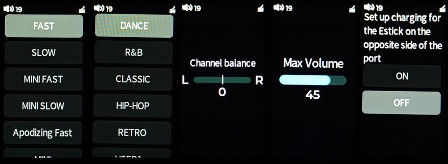 Для настроек QX13 есть 17 пунктов меню. По названиям пунктов уже можно понять, что в них настраивается, и каждый пункт подробно описан в комплектной инструкции с русским языком. Единственное, что мне показалось неочевидным и вызвало у меня вопросы, — это пункты USB-OTA и Charge settings. USB-OTA — это настройка возможности обновления прошивки микроконтроллера через боковой порт USB, а Charge settings необходимо для зарядки FiiO ESTICK Mini Power Bank.