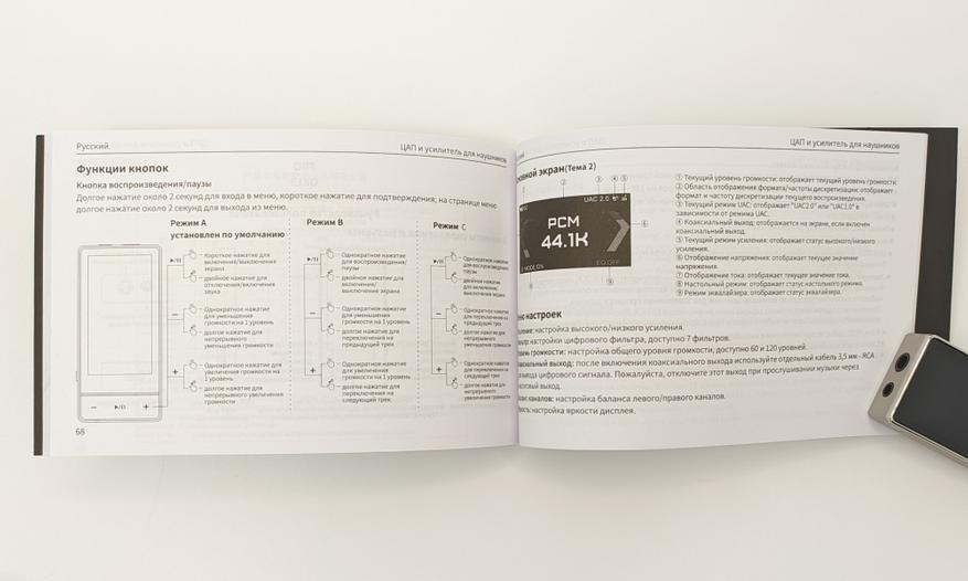 В комплекте, кроме всего отмеченного выше, в том числе инструкции с русским языком и гарантии, положили в комплект наклейку с сертификацией Hi-Res и силиконовые заглушки для Type-C разъемов ЦАПа.
