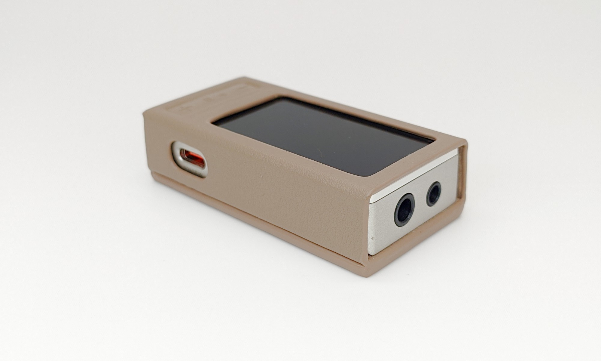 В комплект положили защитный кейс с магнитной задней стенкой. Кейс сидит плотно и четко по размерам. Нажатию кнопок не мешает и в целом довольно удобный. С учетом того, что в комплект также добавили и упругую защитную пленку, то можно считать, ЦАП может быть защищен почти со всех сторон.