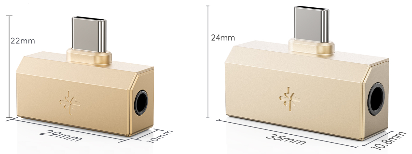 Размеры у обоих ЦАПов компактные, но TINY A вообще крохотный и меньше своего «младшего» брата почти в два раза. Размеры TINY A и B: длина — 29 и 35 мм; ширина — 10 и 10.8 мм, высота — 13 и 15 мм, а вместе с разъемом type-C — 22 и 24 мм. TINY A весит 7.4 гр., а TINY B — 9,9 гр.