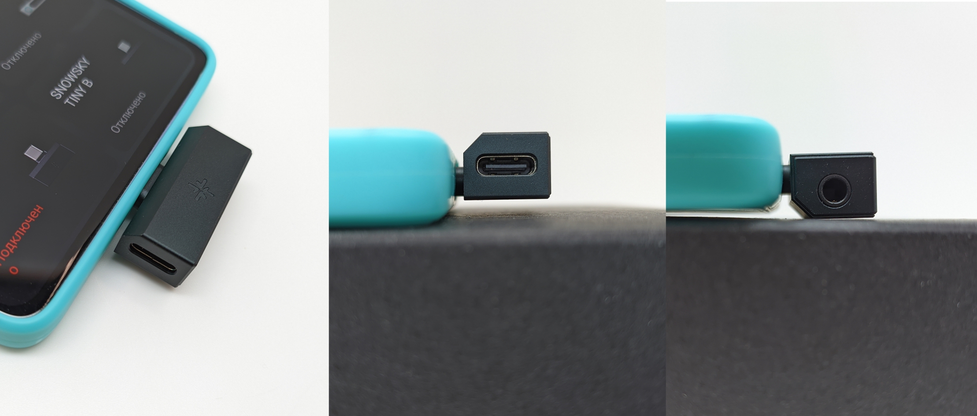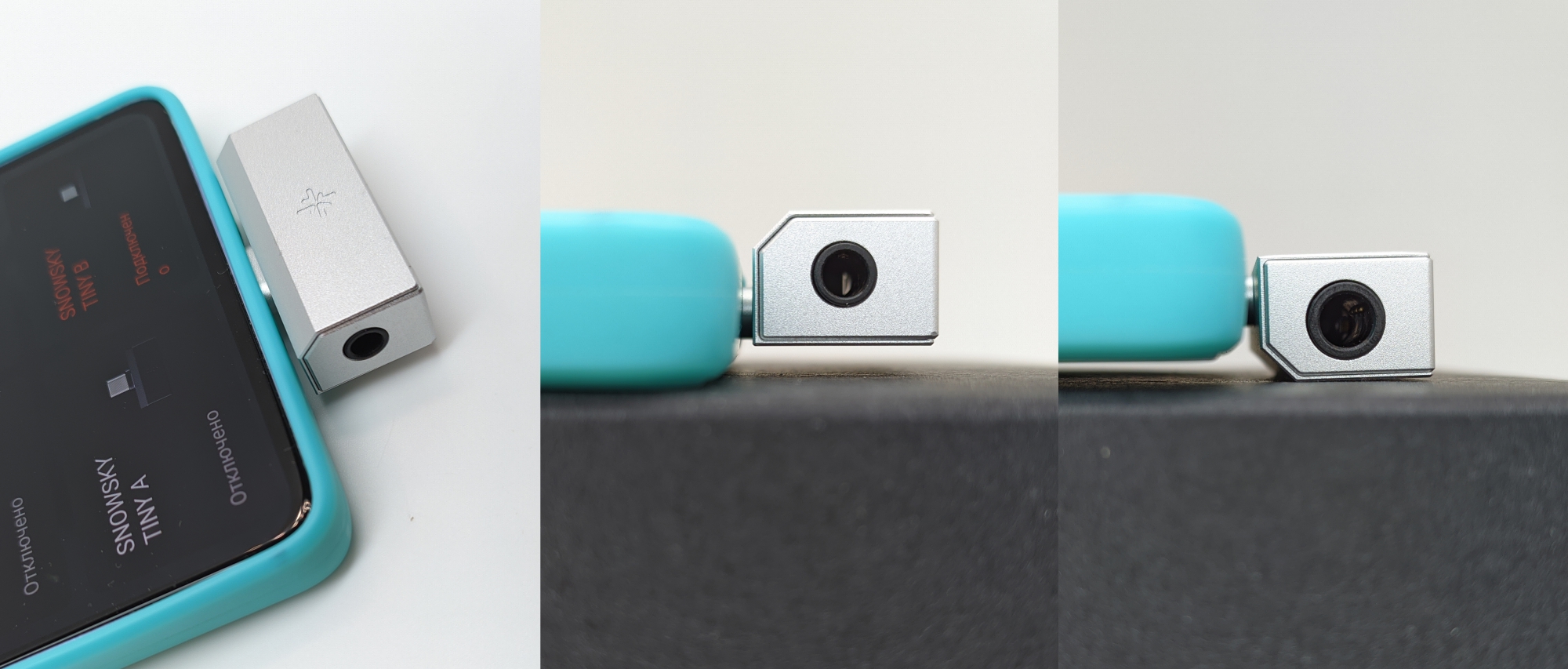 По использованию ЦАПа — все разъемы, что type-C, что аудио, сделаны как надо, и подключается всё четко, с нормальным щелчком, не туго, не слабо. При подключении Тиников к смартфону с моим чехлом, да и с другими чехлами обычной толщины, есть небольшой зазор. Очевидно, из расчета на использование с более толстыми чехлами смартфона или планшета.