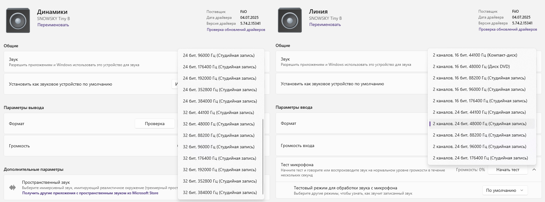 По функционалу новые ЦАПы от FiiO/Snowsky опять «впереди планеты всей», но то, что они немного шумят, немного портит всю картину. Для меня это совершенно точно не критично, и, возможно, с будущими прошивками это как-то да починят. С учетом возможности эквализации параметрическим эквалайзером оба ЦАПа очень интересные. Плюсом идет поддержка собственными ASIO драйверами. TINY A — эксклюзивный девайс с поддержкой зарядки смартфона/планшета и даже офисного ноутбука, а TINY B эксклюзивен поддержкой одновременного подключения двух наушников сразу. Оба ЦАПа поддерживают UAC 1.0 и 2.0, и, возможно, «Тиников» заценят не только меломаны, но портативные геймеры. В общем, оба ЦАПа мне понравились, буду с удовольствием ими пользоваться.