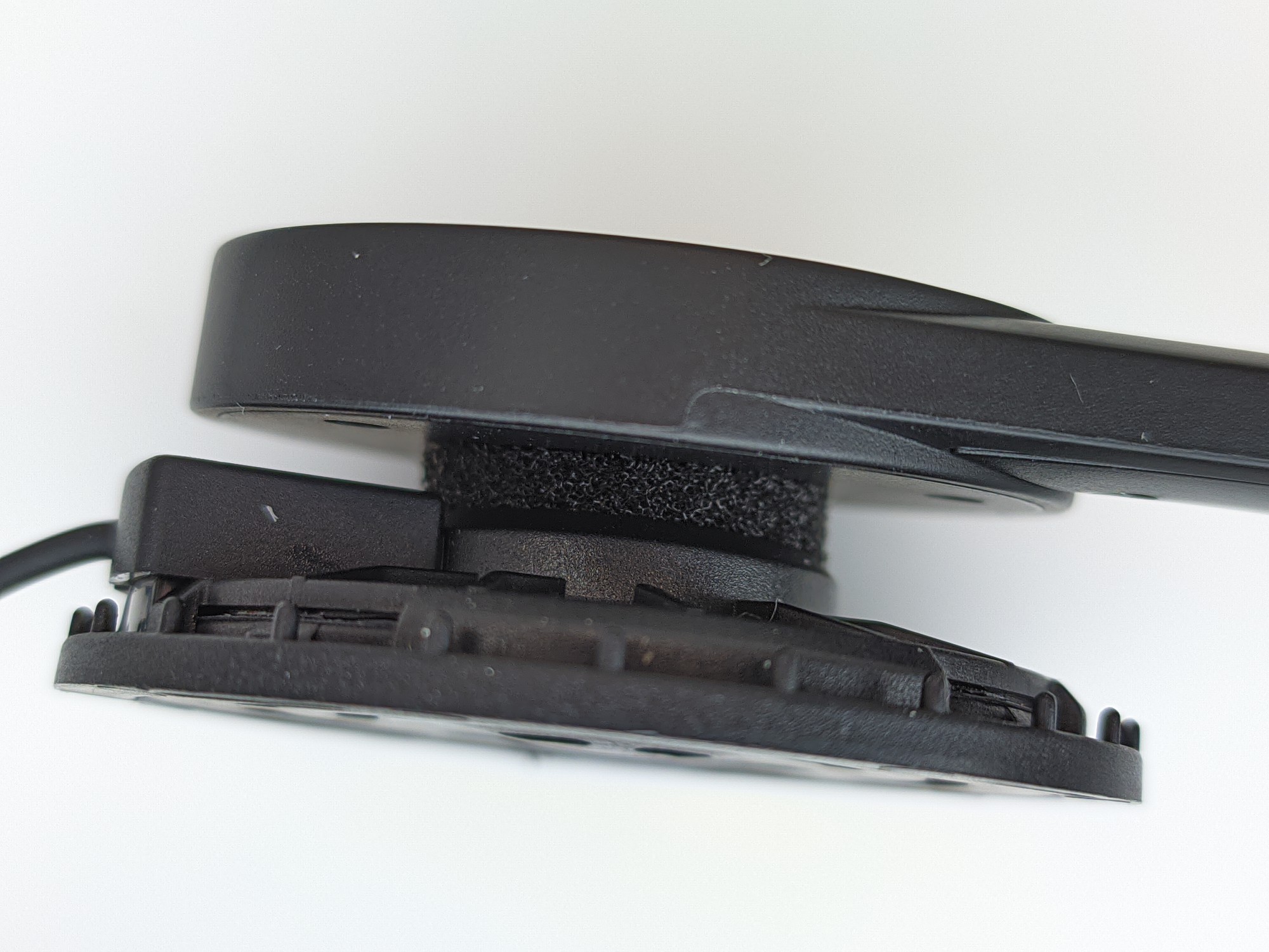 Диаметр камеры с динамиком 45 мм, и сразу хочу добавить, что проблем с заменой амбушюр быть не должно. На маркетплейсах в продаже есть такие 45-миллиметровые. Недолго поискав, нашел себе пару всего за 100 рублей. В выводах я добавил впечатления от сторонних амбушюр. Сам драйвер здесь диаметром 40 мм с японской диафрагмой и магнитами N52. Всё на болтиках, и при желании, наверное, это всё можно разобрать. Между чашей наушников и корпусом крепления установлена поролоновая вставка.