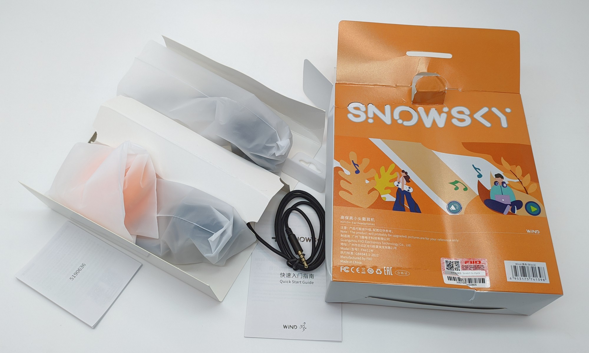 Из комплекта у нас только дополнительная оранжевая пара амбушюр, гарантийный талон и инструкция. Приходят наушники в коробке средних размеров из тонкого картона. Внутри M-образная подложка также из тонкого картона, в которой располагаются сами наушники. Каждый из каналов наушников упакован дополнительно в полиэтиленовый пакет. Коробка может помяться при транспортировке и потерять свой презентабельный вид.