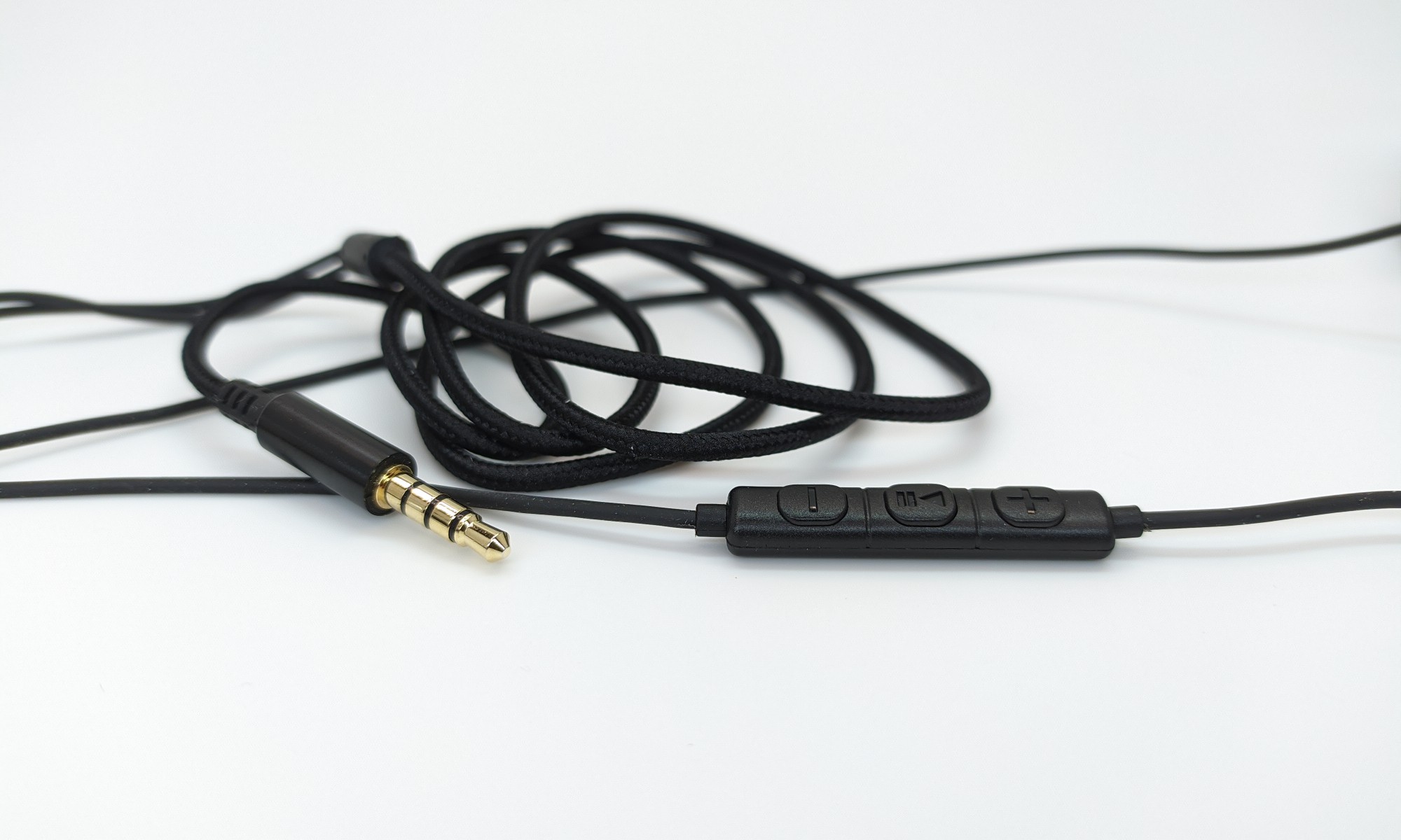 Амбушюры меняются без проблем, и в продаже на замену подобные есть. Кабель в тканевой оплетке до разделения на каналы, а затем в силиконовой оболочке. У гарнитурного блока три кнопки для управления воспроизведением и переключения треков, а также для регулировки громкости. У джека 3,5 есть достаточно эластичная защита от перегибов, а вот на входе проводов в сами наушники такой защиты не предусмотрено. Это может быть слабым местом. Длинна кабеля 120 см.