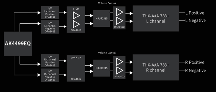 Модуль усиления THX AAA 788 используемый в K9 PRO обеспечивают образцовый уровень детальности и динамики независимо от того, используете ли вы наушники с низким или высоким сопротивлением. K9 PRO может выдавать до 46 Вт переходных процессов при работе с высокоимпедансными нагрузками и до неискаженных 2 Вт при работе с низкоимпедансными нагрузками. По сравнению с оригиналом выходная мощность K9 PRO увеличилась более чем на 50% при более высокой эффективности рассеивания тепла.
