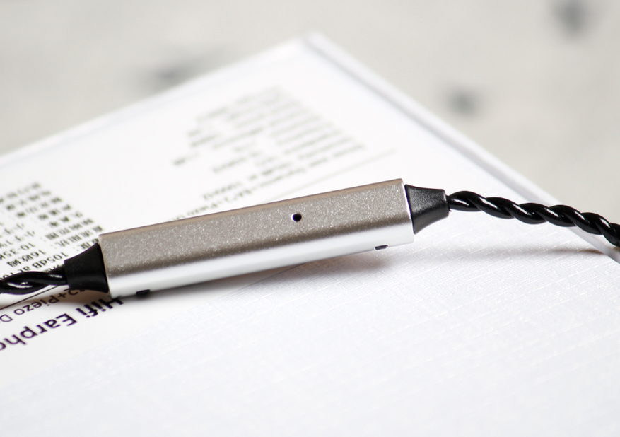 Пульт управления висит справа на уровне груди. Основная часть пульта — пластиковая, прикрыта металлической вставкой. С одной стороны у нас отверстие микрофона (качество передачи голоса-неплохое), с другой стороны три кнопки управления. Все кнопки пластиковые, с чётким и приятным нажатием. Можно нащупать все три кнопки вслепую, с этим проблем не возникнет. Есть две кнопки управления громкостью и центральная кнопка «плей/пауза». Управление простое: одно нажатие: плей/пауза, два нажатия: следующий трек, три нажатия: предыдущий трек.