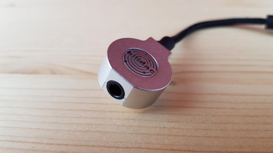 С одной стороны мы имеем позолоченным Type C штекер, с другой — непосредственно корпус устройства, в который встроен 3.5 мм. разъем для подключения наушников или гарнитуры.