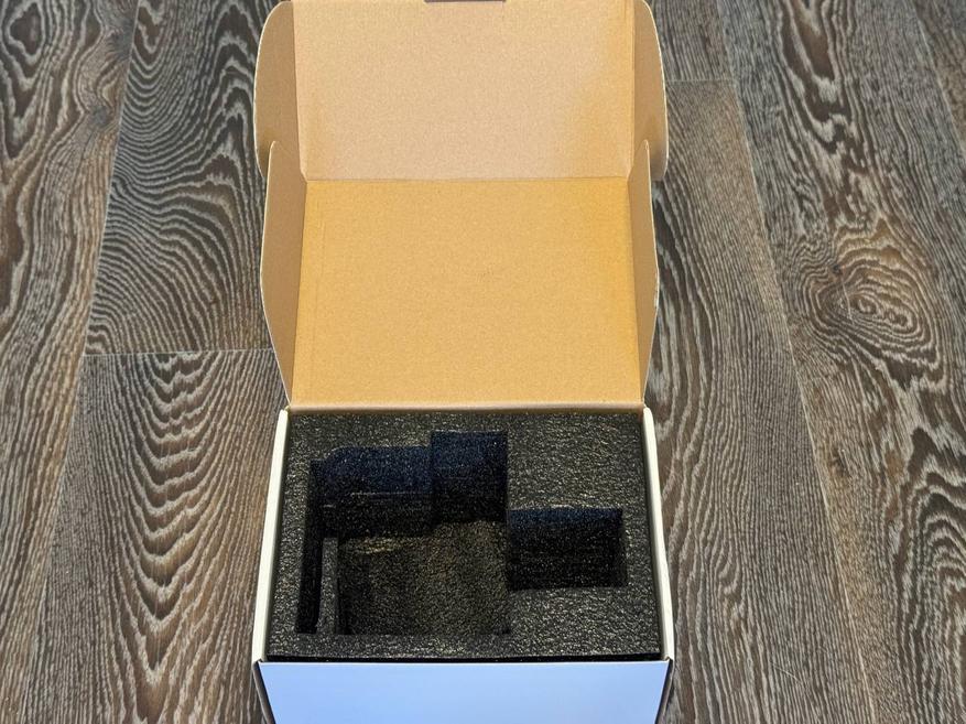 Открыв коробку видно, что производитель позаботился о сохранности устройства. Внутри всё аккуратно уложено в мягкую подкладку, которая защищает микрофон и аксессуары от повреждений при перевозке.