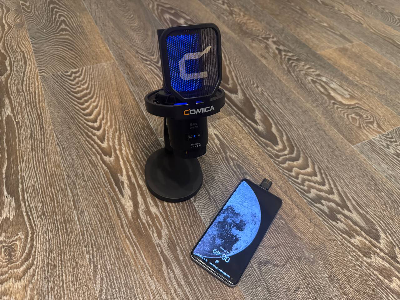 Comica Enjoy UniPro уверенно берёт своё качеством записи, универсальностью подключения и удобством. Он подходит как для стационарной работы за компьютером, так и для мобильных сценариев. Наличие аккумулятора и переходников делает его максимально практичным. Подсветка и аккуратный дизайн позволяют использовать его даже в кадре.