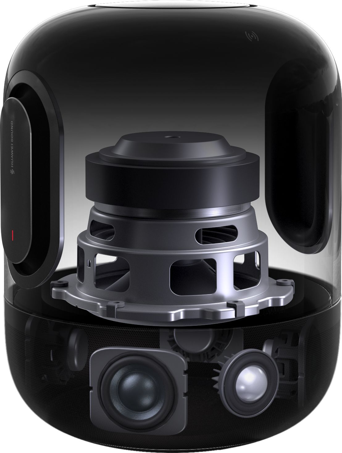 В описании также указано, что в колонку встроен алгоритм улучшения басов HUAWEI SOUND, который активно контролирует вибрации динамика, уменьшает искажения и улучшает переходные характеристики басов. Зеркальная конструкция Sym-Pole устраняет вибрационные шумы и обеспечивает насыщенные басы.