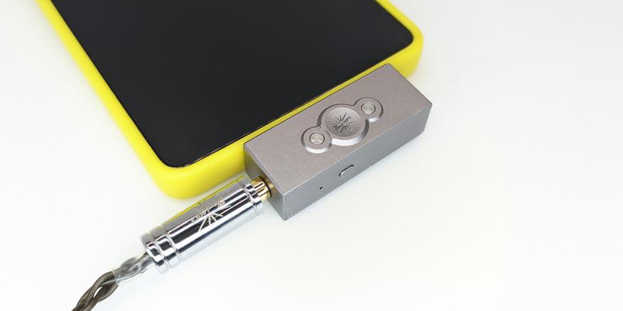 Также есть зазор и между верхней частью ЦАПа и телефоном, это дает люфт, и, чтобы совсем не переживать за разъем телефона, можно на двусторонний скотч наклеить на ЦАП прокладку, которая создаст необходимую плотность подключения для устранения люфта. Тогда, наверное, можно будет класть телефон с ЦАПом даже в карман.