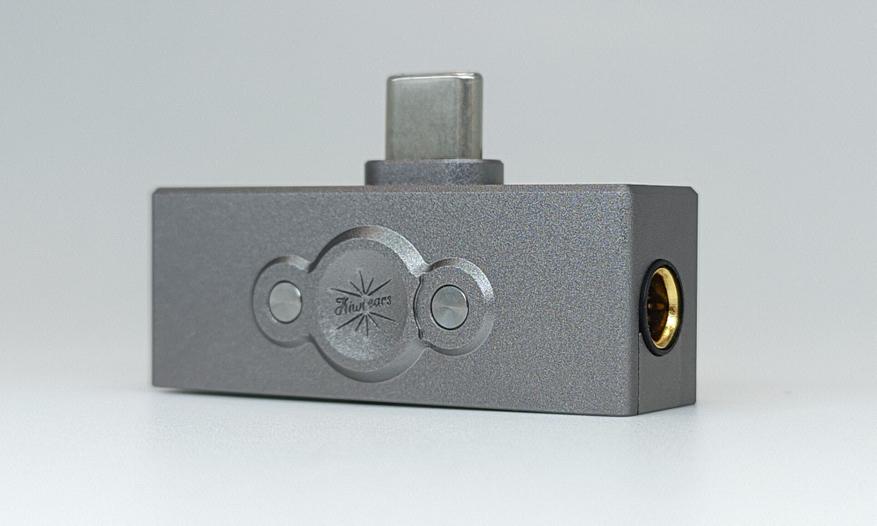Кнопка почти не выступает и нажимается достаточно туго, чтобы не было случайных нажатий. Кнопкой можно выбрать один из трех режимов либо отключить полностью, вернув звучание ЦАПа к нейтральному. Выбранный режим не сохраняется, и при каждом подключении ЦАП переходит в нейтральное состояние. Также в ЦАПе установлен и белый светодиод, который загорается при подключении к телефону или ПК, во время использования он не светит.