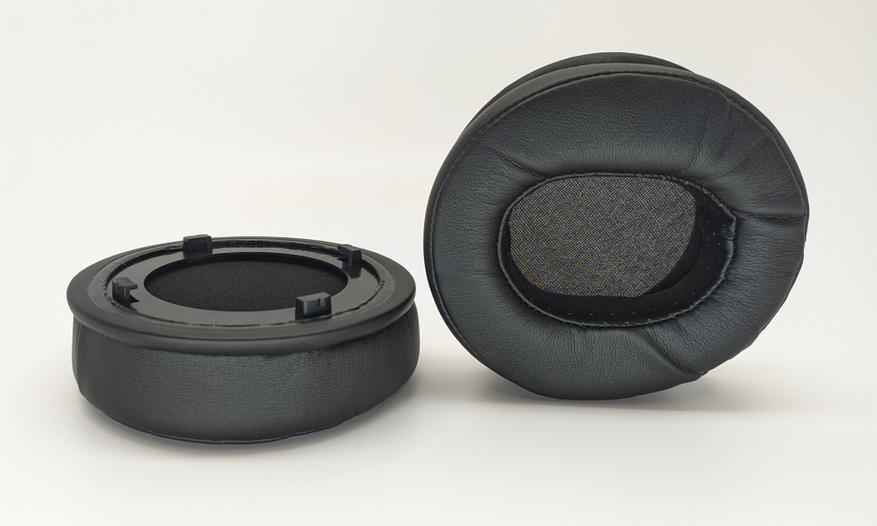 По умолчанию надеты амбушюры из кожзама, но при смене их на велюровые звучание немного теплеет, за счет прибавки общей массы баса, и смягчения на верхних средних частотах. При этом высокие частоты начинают проявлять себя чуть больше. Мне звучание с амбушюрами из кожзама понравилось больше, оно более живое и вовлекающее. Поэтому именно их звучание я описывал. К звучанию велюровых амбушюр также быстро привыкаешь, и его тоже можно считать универсальным, и оно по-своему тоже весьма интересное. И хотя в целом тональная разница заметна, но по остальным аспектам всё верно для обоих типов амбушюр.