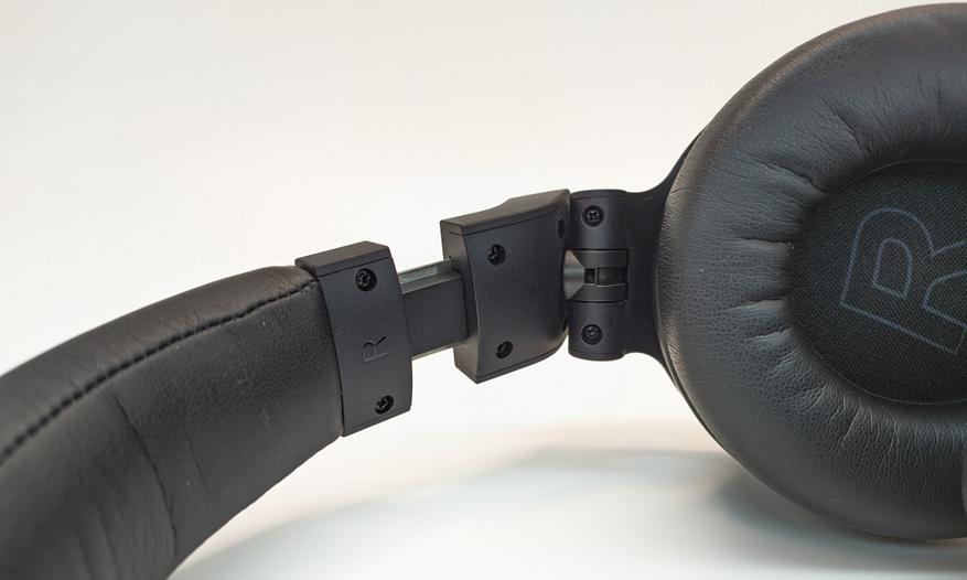 Корпуса чаш и все крепления сделаны из твердого толстого пластика. Несмотря на большую подвижность конструкции, наушники чувствуются монолитными и плотными, без лишнего люфта. Оголовье и амбушюры из мягкого кожзама, металлические направляющие для регулировки размера. Всё на болтиках.