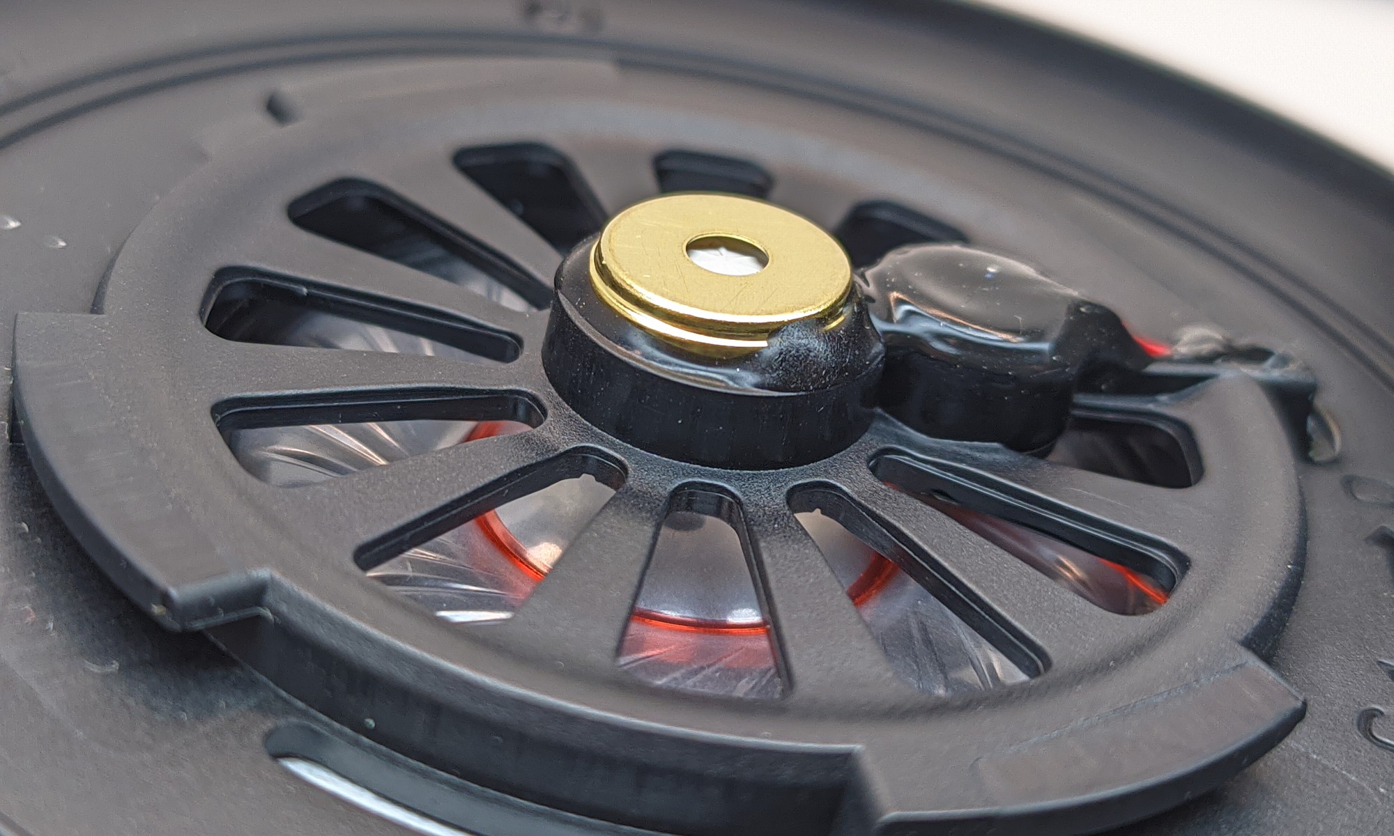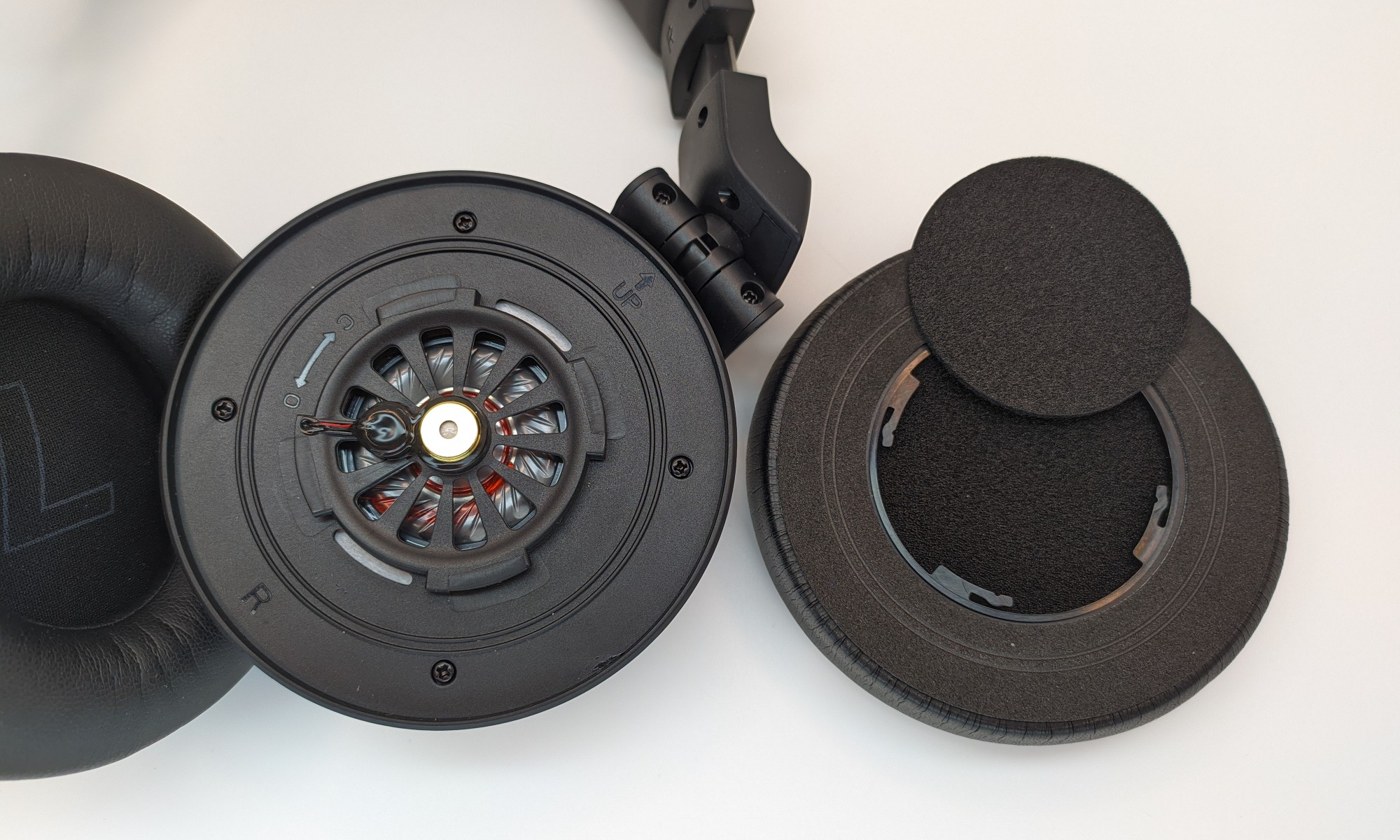 Конструкция предусматривает быстрый съем амбушюр, но они с пластиковой пряжкой для крепления на чашах. Конструкция уникальная, и похоже, что ничего аналогичного, подходящего конкретно к Aventus, в продаже пока нет. На фото я положил сменные фильтры, которые идут в комплекте. О них я расскажу ниже. На открытых чашах хорошо видна коаксиальная конструкция из двух драйверов: 40-мм полнодиапазонный и 10-мм с собственной настройкой для высоких частот.
