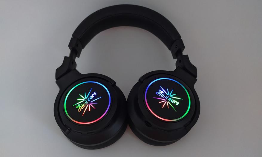 У наушников на фейсплейтах есть встроенная RGB-подсветка. При выключенных наушниках подсветка не включается. Если наушники включены, то подсветка доступна при любом подключении. У подсветки два режима: статичное и со сменой цветов по кругу с периодичностью 0,5 секунды.