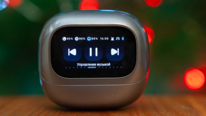 А вот большая часть передней стороны занята сенсорным экраном и он-то и отвечает за ту магию из названия. Изначально я как-то равнодушно отнёсся к тому, что может кейс, ведь часть этого делают наушники, а часть сам смартфон. Но буквально за день оказалось что кейс исключительно удобен.
