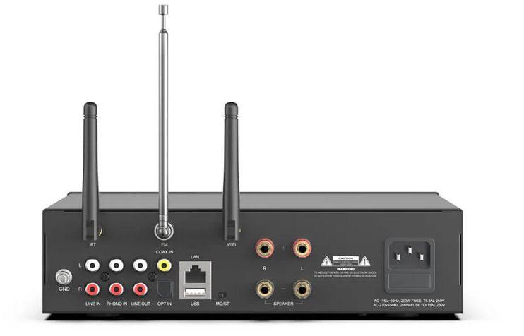 Китайский производитель аудиотехники Arylic представил новый универсальный усилитель мощности. Модель A100 помимо собственно усилителя на чипе TPA3255 (100 Вт на канал на нагрузку 4 Ом), включает ЦАП ESS 9023P, возможности сетевого плеера (AirPlay, Spotify Connect, DLNA и интернет радио) с Wi-Fi 2.4G, мультирум и FM-радио. Так же имеется модуль Bluetooth 5.0 и возможность управления с мобильного ПО (4Stream).