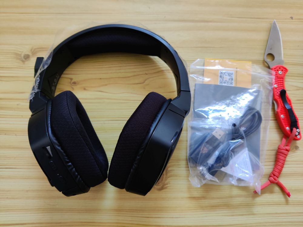 Приехала мне вот такая большая коробка с наглядной демонстрацией товара. Внутри помимо чехла для переноски и кабеля тайп-с для зарядки, у нас еще лежит инструкция и ресивер для подключения к системному блоку без блютуза. Я использовал с ноутбуком и связью через встроенную плату блютуз, поэтому нет нужды в аксессуаре.