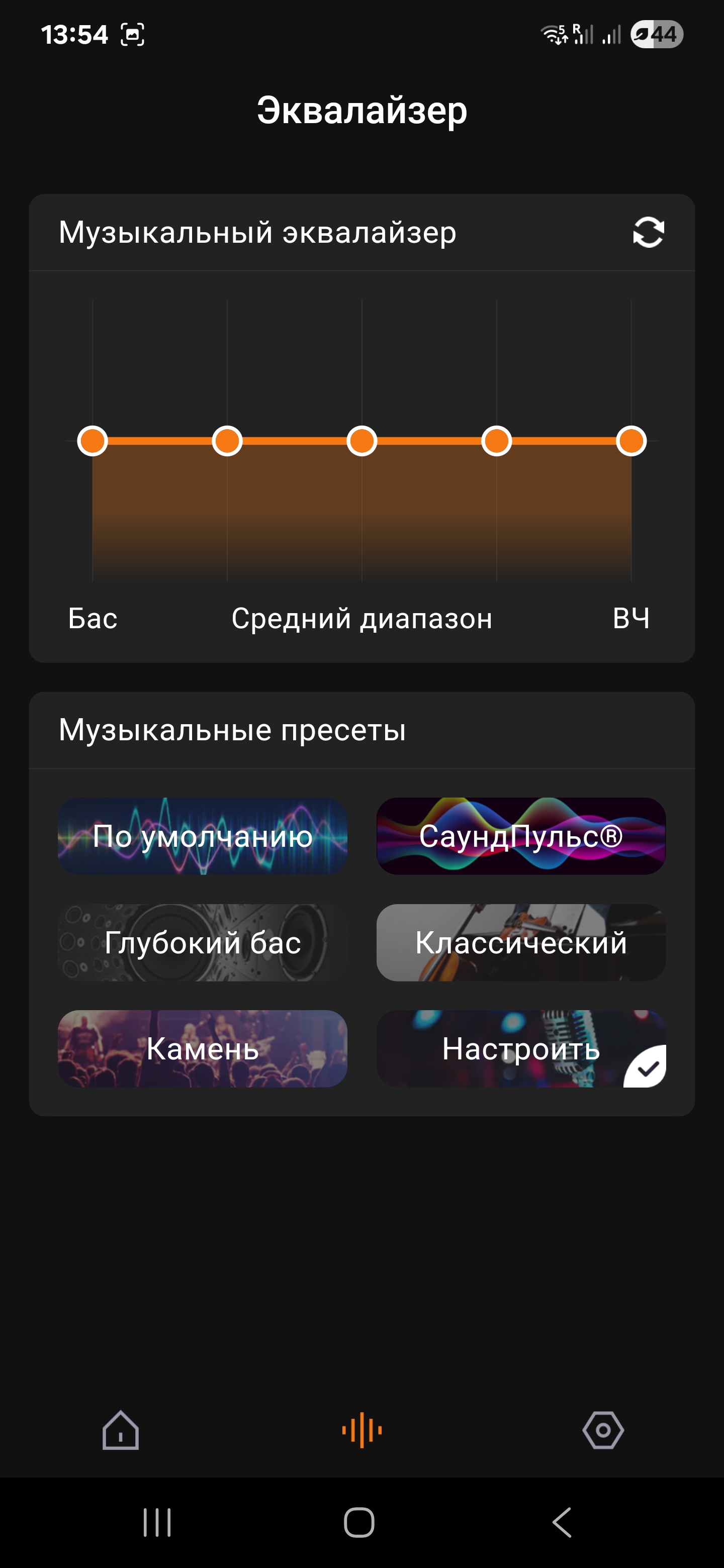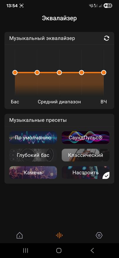 • Настраивать звук вручную или использовать готовые пресеты (в том числе SoundPulse и DeepBass);