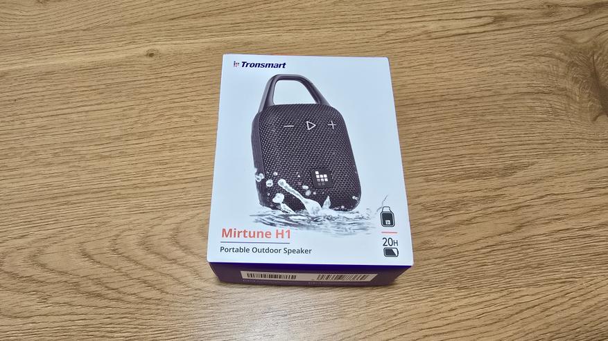 Tronsmart Mirtune H1 поставляется в компактной картонной коробке с фирменным оформлением. Дизайн минималистичный. Коробка оснащена подвесом.