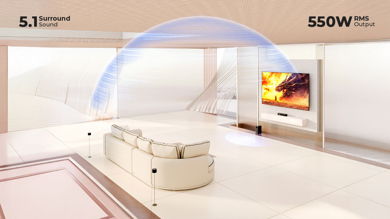 Индийский бренд Zebronics представил акустическую систему Zeb Juke Bar 9710C формата 5.1 с поддержкой Dolby Atmos и DTS: X. Комплект суммарной мощностью 550 Вт RMS включает в себя компактную звуковую панель, беспроводной сабвуфер и два тыловых сателлита.