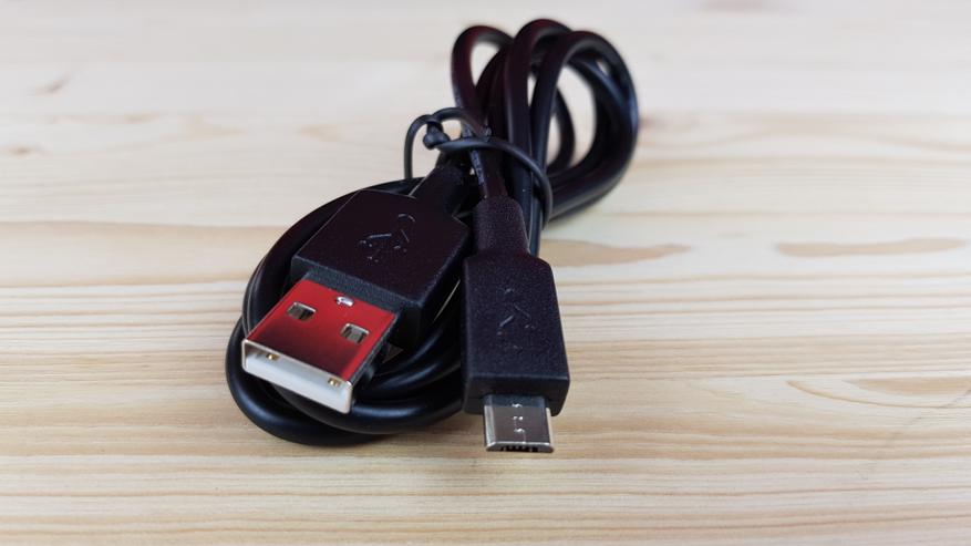 MicroUSB кабель для зарядки устройства.